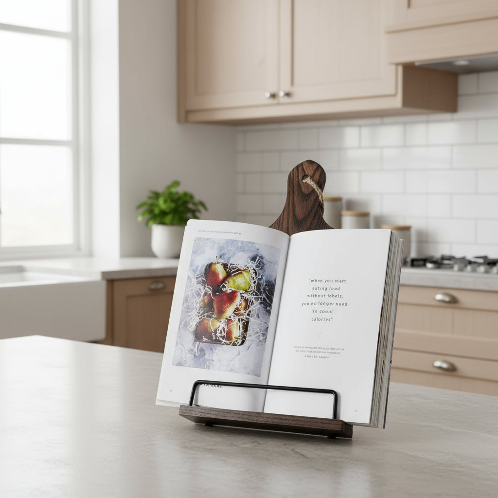 Stødig og funksjonelt: Holder kokebøker, hefter og nettbrett i riktig vinkel – så du slipper å bøye nakken eller søle på sidene.